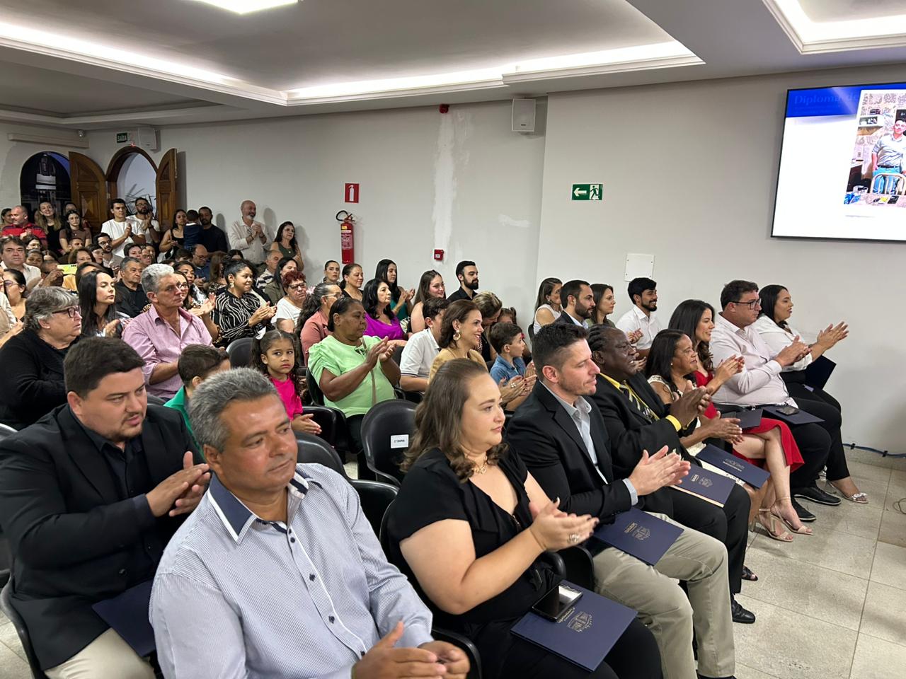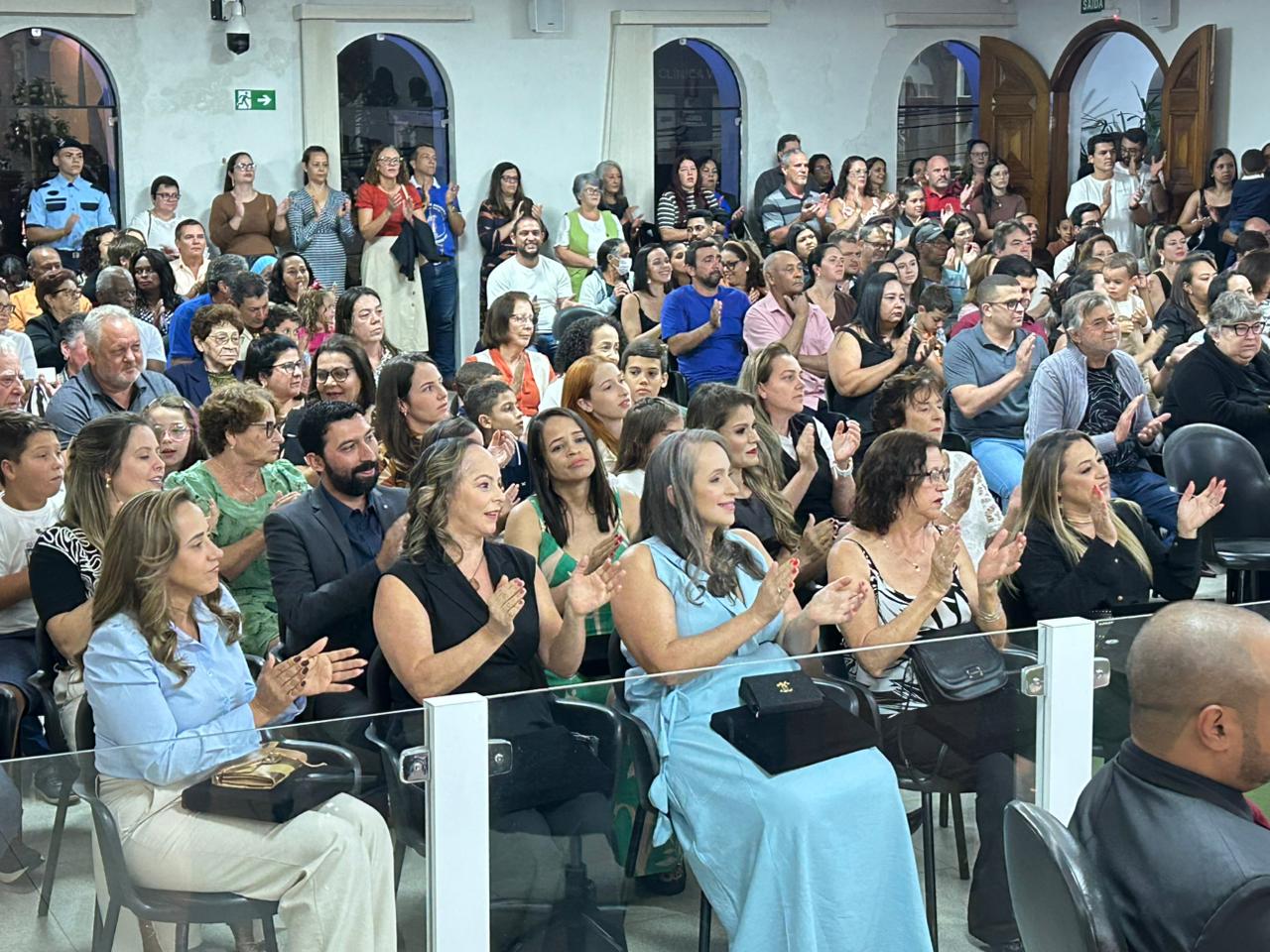 Durante a solenidade, os vereadores entregaram as homenagens aos profissionais indicados, reforçando o reconhecimento da Câmara Municipal ao trabalho fundamental realizado por educadores e servidores públicos para o desenvolvimento e bem-estar da comunidade sacramentana.