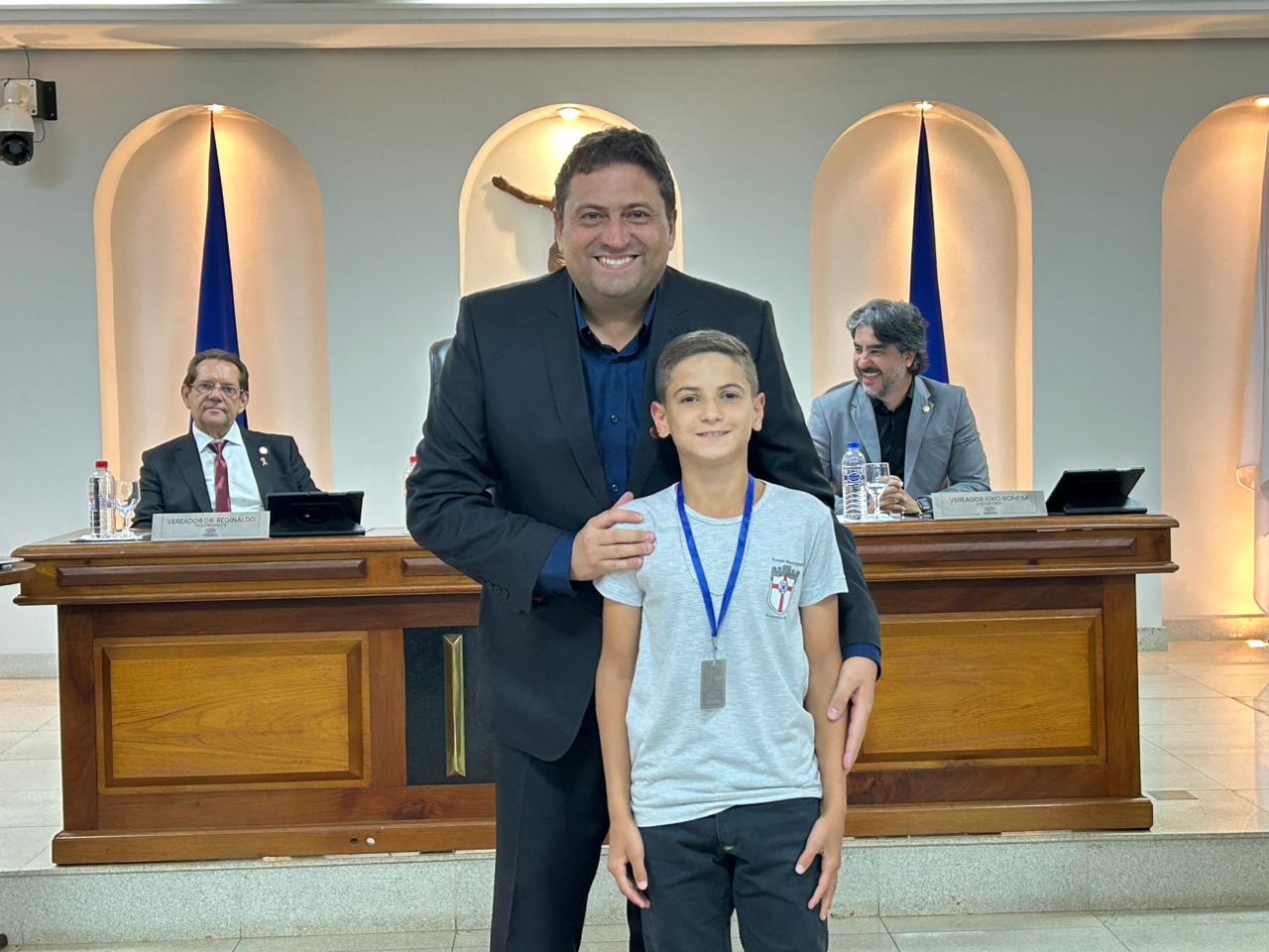 Durante a 18ª Reunião Ordinária do 2º Período de 2025, em 1º de dezembro, o Poder Legislativo entregou a premiação Aluno Nota Dez, instituída pela Resolução nº 384/2023. A iniciativa reconhece estudantes do Ensino Fundamental e Médio que alcançaram as maiores médias em suas escolas ao longo do ano letivo.